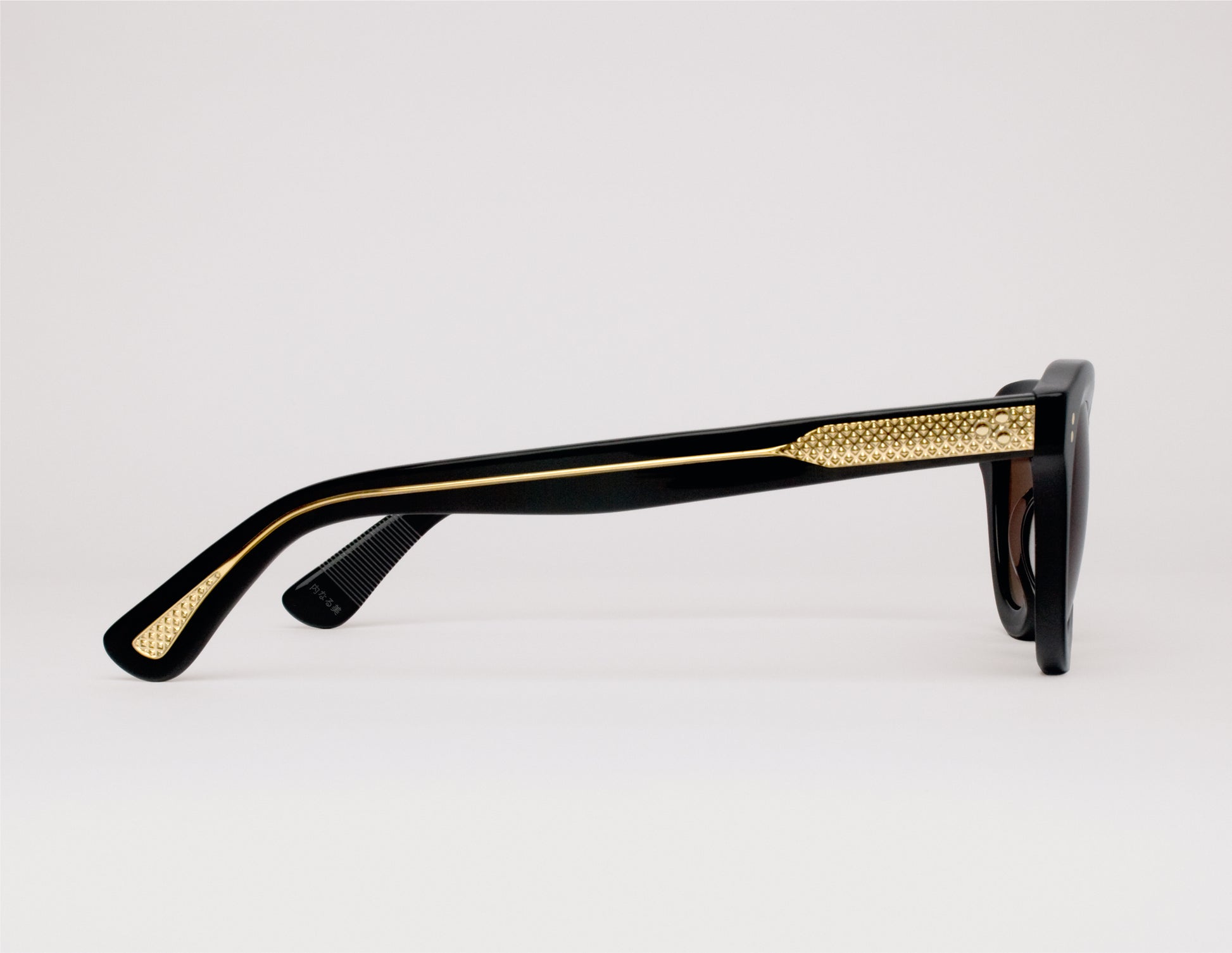 Featuring signature Gold metal plate Logo & anti slip hairline engraving details on temple tips while heat-moulded temples make them supremely comfortable to wear. Created by Japan´s leading artisans using world´s number one cellulose acetate by Takiron Rowland Japan.